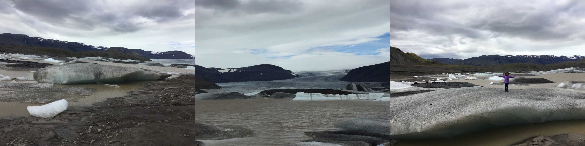 Our typical layers include a short sleeve, a long sleeve, and a warm jacket. Since we were going to visit the glaciers and waterfalls, we also brought rain jackets (or waterproof outer jacket) and gloves. The rain jackets proved to be extremely useful!