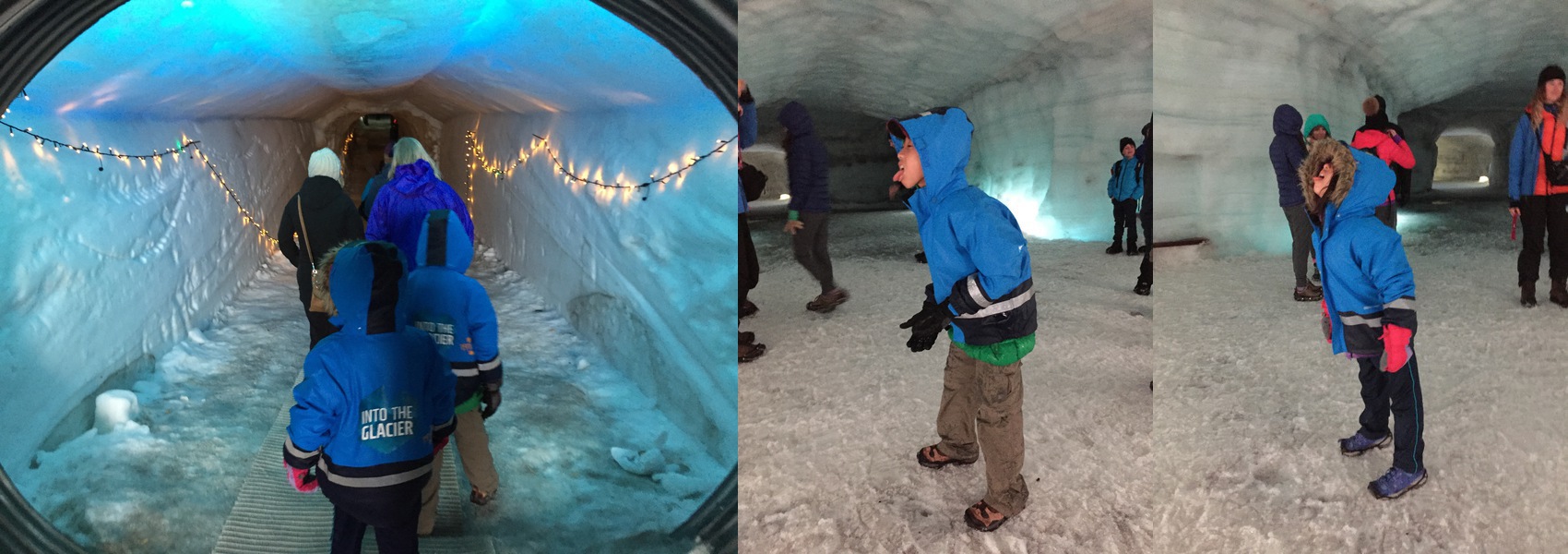 The waterproof shoes also proved to be extremely useful when going INTO the glacier. Given it’s July, the top layer of snow is melting and the water goes through the ice and drips into the glacier tunnel we visited, so sometimes there’s a layer of water 1⁄4 - 1⁄2 inch deep that we need to walk through.